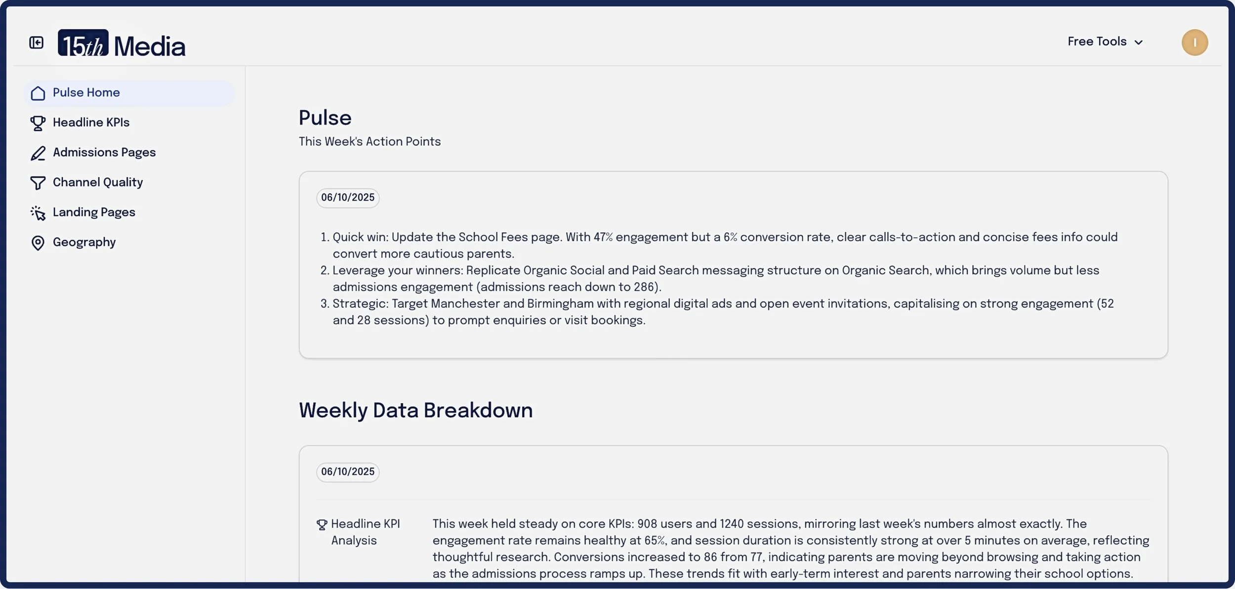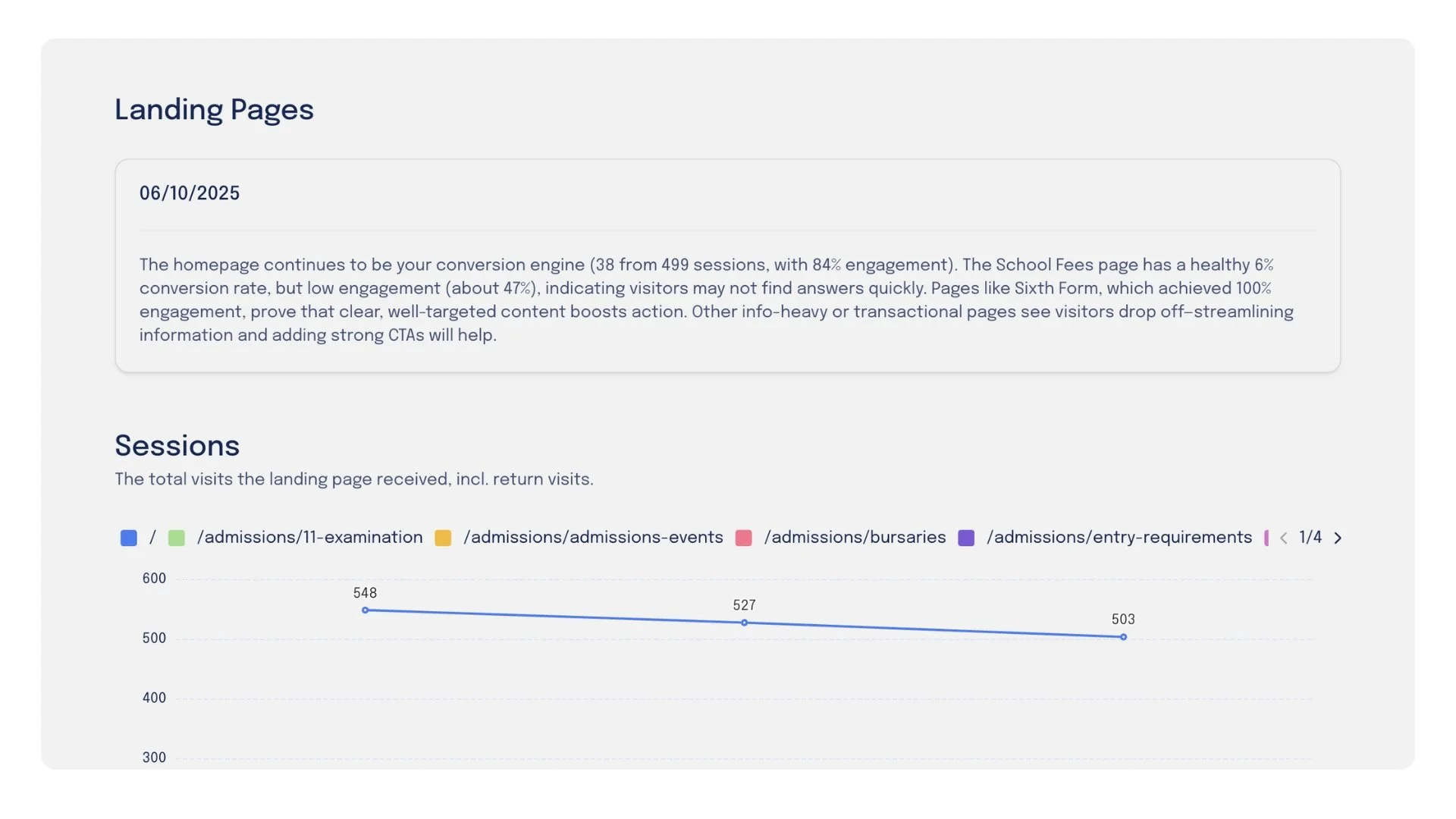 The new AI app that turns your Google Analytics data into clear, actionable Admissions insights.